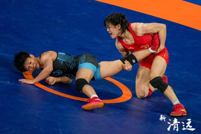 11月10日,在清遠舉行的摔跤項目女子自由式57公斤級決賽中,廣東健兒梁虹脫臼忍痛拼下6分,收獲瞭一塊閃閃發光的銀牌!