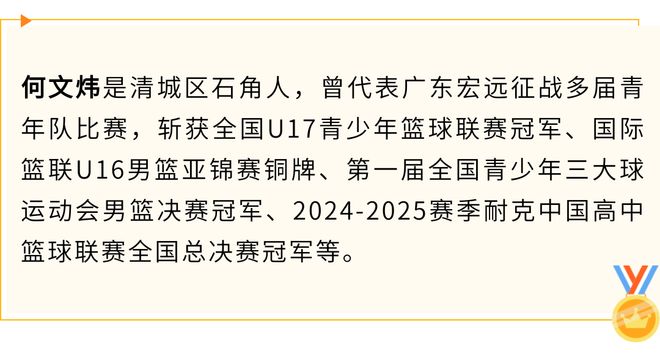 11月18日晚,十五運會U18男籃決賽中,來自清城區石角鎮的運動員何文煒作為球隊核心,整場比賽貢獻10分6籃板6助攻,並在比賽最後時刻貢獻三次關鍵搶斷幫助廣東隊奪冠。