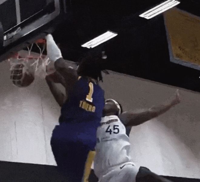 湖人25屆次輪第6號秀蒂耶羅,在G聯賽空接扣翻對手。