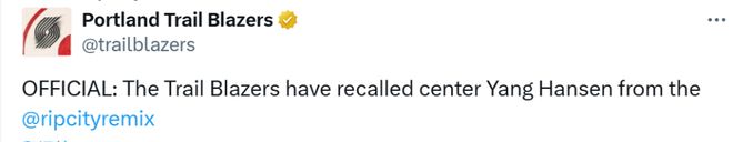 北京時間11月18日,開拓者官方宣佈從G聯賽下屬的混音隊召回楊瀚森。重回開拓者的瀚森,有望隨隊在明日(北京時間周三)出戰太陽。此次下放,瀚森在混音隊打瞭兩場比賽,數據分別是8分13籃板4助攻1搶斷1蓋帽、21分9籃板3助攻1搶斷3蓋帽,場均14.5分11籃板3.5助攻1搶斷2蓋帽。