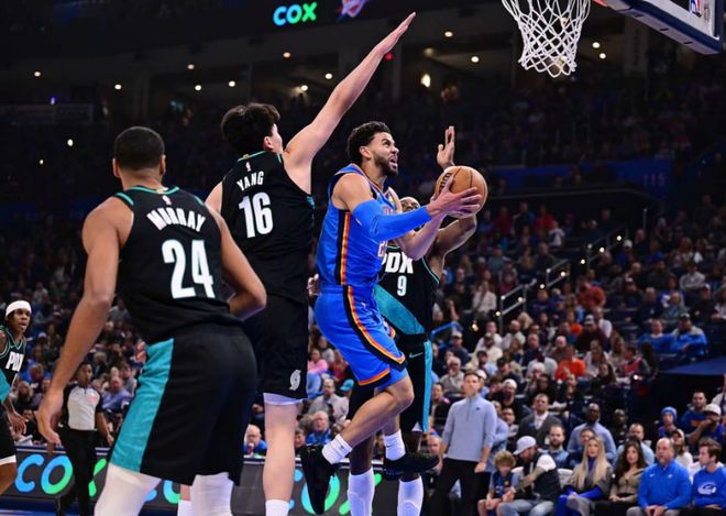 在本賽季的首次交鋒,開拓者曾經主場121-119大逆轉險勝雷霆,送給衛冕冠軍新賽季首場敗仗,也是雷霆本賽季至今的唯一一場失利。隻是該場比賽,楊瀚森全場板凳坐穿,並未能夠獲得登場比賽機會。