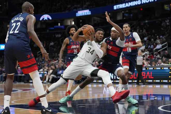 中場休息回來,雄鹿無緣連續三節得分30+,奇才則是連續兩節單節轟下30+得分繼續反撲追分。雄鹿一度擴大75-60領先優勢,但奇才多點開花反撲追到僅差1分,雄鹿也是繼續擴大優勢,雄鹿單節28-33被追回5分,三節結束雄鹿被追到僅以94-91領先奇才3分。前三節比賽,雄鹿三分32中17超過5成準星,字母哥11中7得到17+5+4與小波特4記三分23+4+4,引領雄鹿5人得分上雙;奇才三分28中7,麥科勒姆23分與巴格利18+6,引領奇才4人得分上雙。