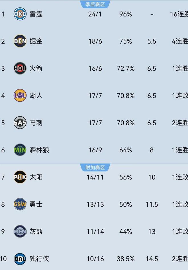 盡管文班亞馬長期缺陣,馬刺依然展現出瞭不俗的戰鬥力,本賽季至今以17勝7負排名西部第五,戰績和西部第四的湖人持平,僅落後西部第二的掘金1個勝場。
