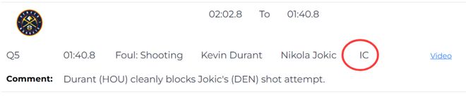 加時賽還剩1分40秒時,火箭隊前鋒杜蘭特對約基奇的犯規判罰不成立;
