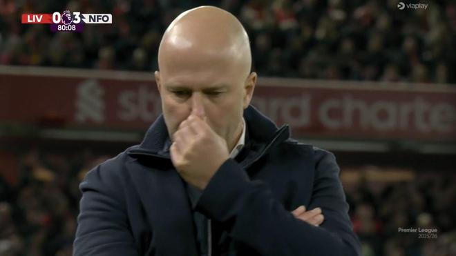 英超第12輪,利物浦主場對陣諾丁漢森林,比賽80分鐘不到,利物浦0-3落後,這是利物浦自2021年2月以來首次在英超主場丟掉三球。