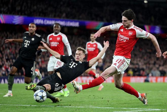 第22分钟,萨卡开出角球,廷贝尔在人群中机敏一点,诺伊尔被晃了个通透,皮球应声入网。不过,拜仁“伦敦之王”的头衔可真不是虚的,10分钟后便用一次迅猛的反击将阿森纳的坚固防线捅了个通透,小将卡尔一蹴而就,将皮球送进了拉亚身后的球门。