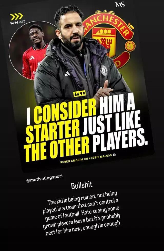 一周後,當梅努再次無緣主場亮相,曼聯名宿斯科爾斯直接在Instagram上爆粗口回應:“狗屁!這孩子正被毀掉,一支連球都控不住的球隊卻不讓他上。我討厭看到自傢青訓離隊,但現在對梅努來說,走也許是最好的選擇,他受夠瞭。”
