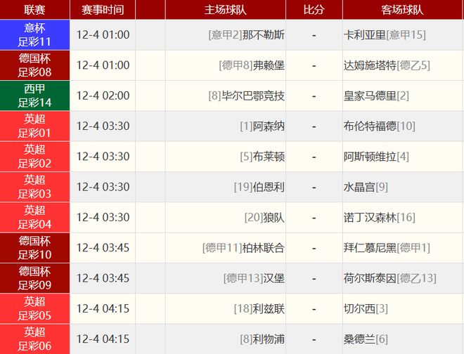 其他赛事比分: