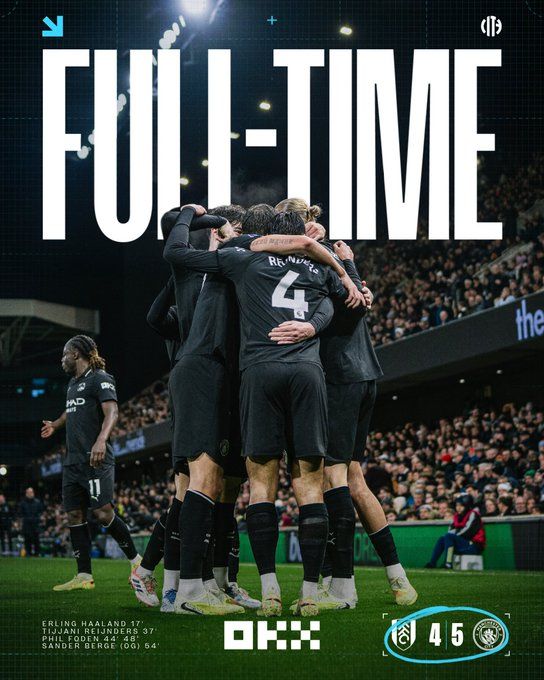 北京时间12月3日03:30,英超联赛第14轮,曼彻斯特城客场挑战富勒姆。上半场,哈兰德首开纪录,赖因德斯破门,福登打进一球,史密斯-罗扳回一城。曼城半场3-1领先富勒姆。下半场,福登再下一城,多库制造博格的乌龙球,随后伊沃比破门,丘库埃泽双响。最终曼城5-4击败富勒姆,本轮先赛的情况下,曼城暂落后榜首2分。