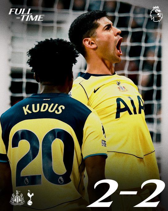 英超 纽卡斯尔联 2-2 托特纳姆热刺