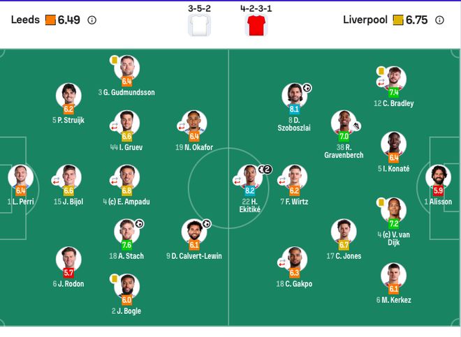 利物浦首發:1-阿利松、4-范戴克、5-科納特、6-凱爾凱茲、12-佈拉德利(68’12-戈麥斯)、17-瓊斯、38-赫拉芬貝赫、8-索博斯洛伊、18-加克波(83’9-伊薩克)、7-維爾茨(68’10-麥卡利斯特)、22-埃基蒂克(83’3-遠藤航)。