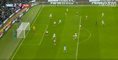 半場結束,曼城憑借兩名中後衛各進一球,暫時主場兩球領先桑德蘭。