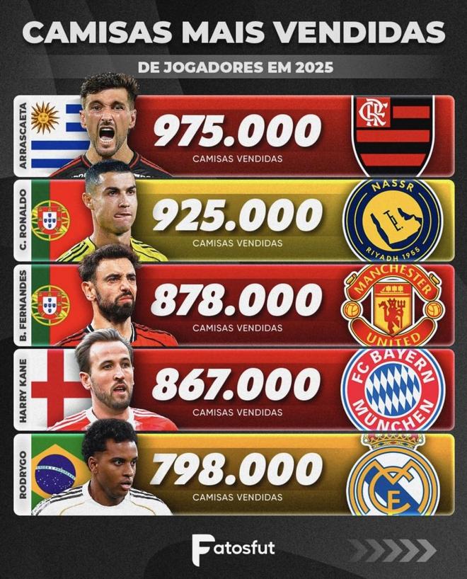 梅西能在这张榜里压过C罗排到第2,和过去长期“C罗球衣销量更高”的印象形成反差,说明这两年格局已经有了一些变化。一边是世界杯后余温还在、去美国开启新故事、迈阿密国际在全球范围内不断刷存在感;另一边是C罗在沙特,联赛整体曝光度和球迷消费习惯、购买渠道都不如欧美主流市场集中,所以梅西这边的“情怀+新市场”带来的是一波更猛的消费高潮。