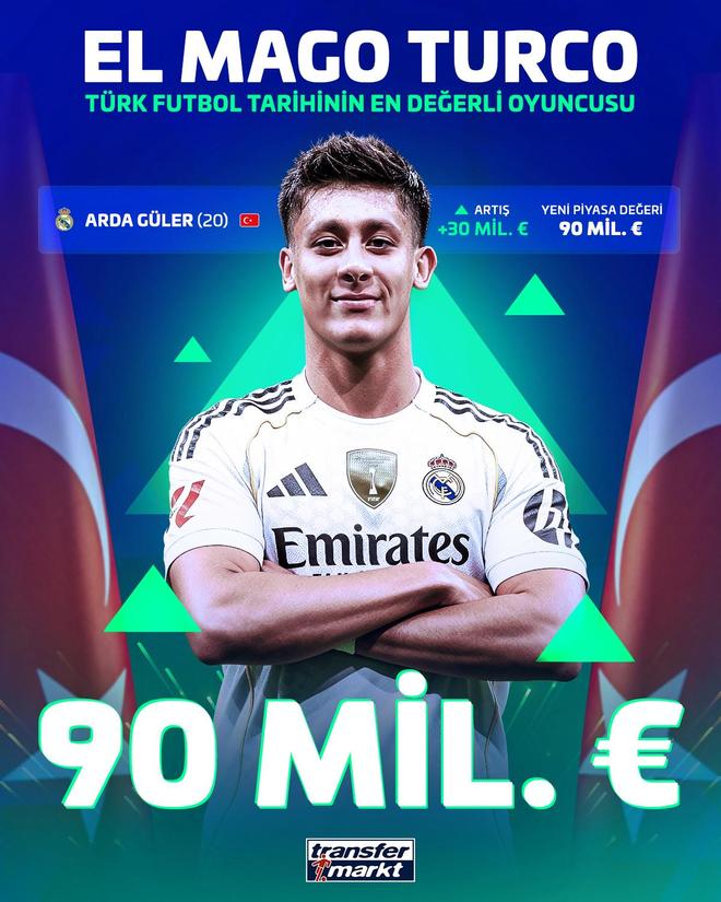 居萊爾也因此超越尤文圖斯的伊爾迪茲,成為土耳其身價最高的球員。目前,皇馬隊內隻有四名球員的身價高於居萊爾。意甲球員的市場價值將在未來幾周內更新。屆時,效力於尤文圖斯的伊爾迪茲的身價也可能發生變化。