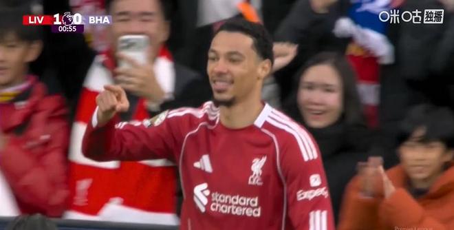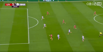 半場結束,利物浦暫時1-0領先佈萊頓。