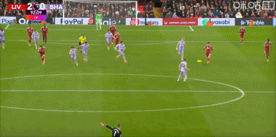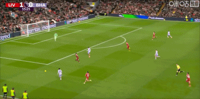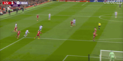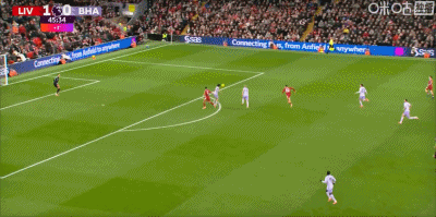 第60分鐘,薩拉赫角球助攻,埃基蒂克頭球完成梅開二度!利物浦2-0領先佈萊頓