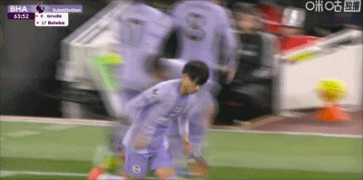 第64分鐘,佈萊頓換人調整,三笘薰替補登場