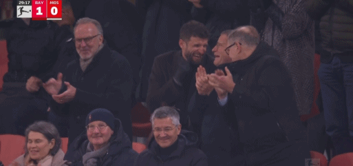 第29分钟,小红书丨拜仁进球后镜头给到看台,穆勒和高层一起庆祝