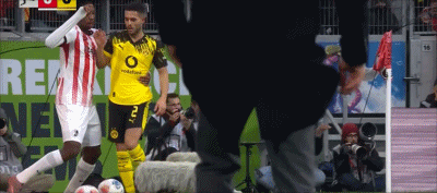 第11分钟,情绪激动!扬-科托直接把对方推到广告牌外