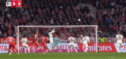 第45+2分钟,伯温开出任意球,波图尔斯基头球破门,美因茨1-1拜仁