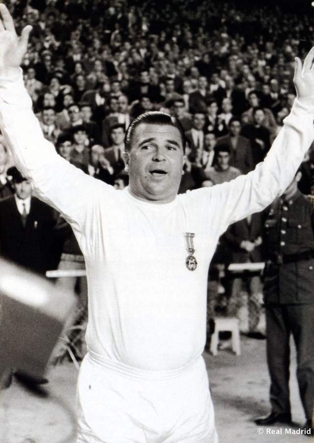 头号球星,绰号“金箭头”的迪·斯蒂法诺,效力皇马11年,8次赢得西甲冠军,5次西甲金靴,5次欧冠决赛都有进球,2次荣膺金球奖。如果换个时代,迪·斯蒂法诺完全可以跟C罗、梅西比金球奖以及各种进球数据。