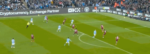 第69分鐘,薩維尼奧右路橫傳,裡科-劉易斯插上橫敲,西漢姆聯兩名後衛相撞,哈蘭德笑納大禮輕松推射命中,完成2射1傳好戲,曼城3-0遙遙領先。