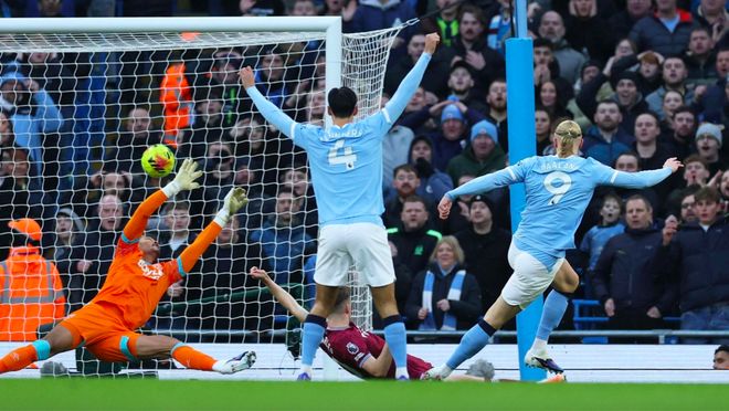 第69分鐘,剛剛換人調整的曼城就再次取得進球,替補登場的薩維尼奧和劉易斯策動進攻,哈蘭德梅開二度。