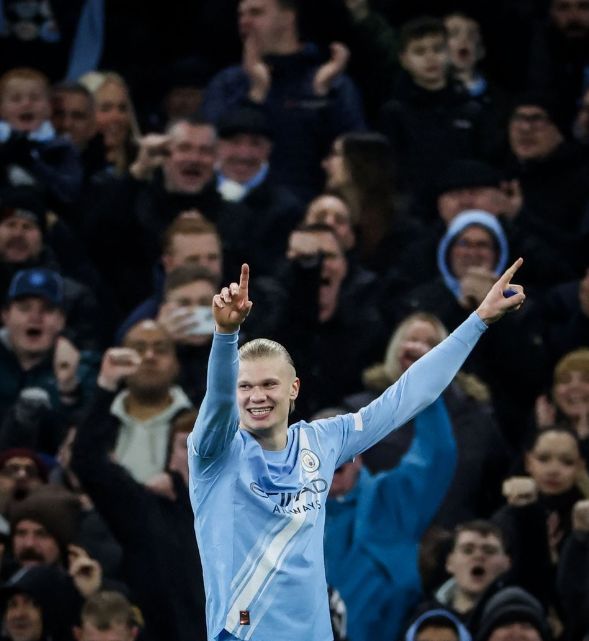 逃過一劫的曼城,在第69分鐘徹底終結瞭勝負的懸念,完成一次成功防守後,藍月軍團迅速推反擊,哈蘭德禁區內抽射上演梅開二度,將全場比分定格為瞭3-0,職業生涯114場英超比賽,哈蘭德已經打進瞭104球,超越C羅追平瞭切爾西名宿德羅巴(254場104球),升至歷史第32位。