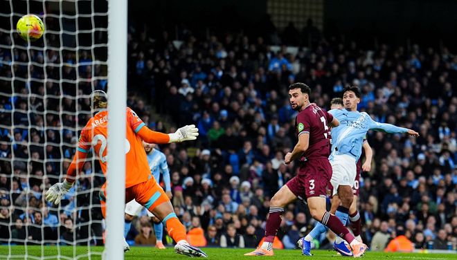 比賽剛剛開打第5分鐘,哈蘭德就幫助曼城打破場上平衡,接到隊友左路傳中後,挪威魔人迎球怒射被撲,但他的補射讓西漢姆聯隊的門將無可奈何,藍月軍團早早就取得瞭1-0的夢幻開局,4分鐘之後,曼城再次打出邊中結合,可惜這一次哈蘭德的頭球攻門偏出,沒有能夠命中目標。