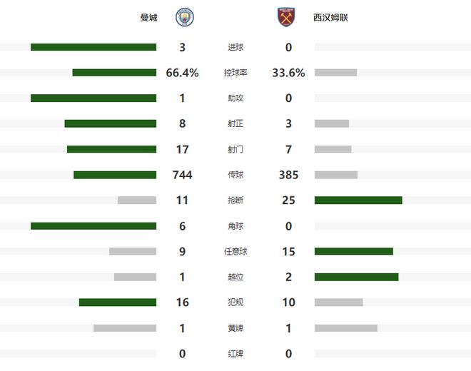 場面非常被動的西漢姆聯隊,在第32分鐘終於形成瞭一次進攻,但鮑勃在大禁區右側的掃射偏出瞭遠立柱,沒有給多納魯馬形成實質性的威脅,半場比賽結束之前,曼城擴大領先優勢,哈蘭德禁區內得球後,順勢做給瞭中路跟進的賴因德斯,後者小角度勁射,幫助曼城帶著2球領先,回到瞭更衣室。