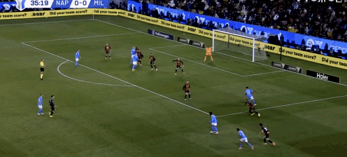 35:19,橫移邊路,換位盯人都做瞭,但隨後那不勒斯的無球跑位被無視瞭。