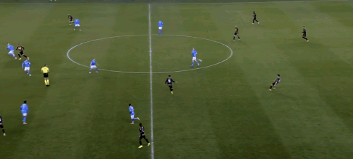 相對而言,以往對於米蘭並不算罕見的邊路控球,肋部無球插上配合在本場基本失蹤。多數進攻回合裡,米蘭就是幾個後衛和後腰拉開不斷橫傳,夾雜著少量鋒線回撤接球再回傳,嘗試調度對手移動還無法找到空間,隻能把那不勒斯防線逐步壓扁,但最後的選擇就是邊路起一腳傳中瞭事。