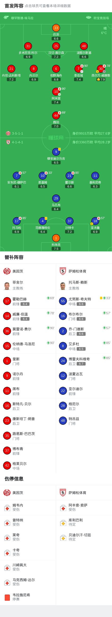 北京时间12月19日,欧洲协会联赛联赛阶段第6轮,美因茨迎战萨姆松体育。比赛中,李在城送出助攻,西尔万-威德默破门得分,为球队取得领先。随后,阿米里主罚点球命中,进一步扩大比分优势。最终,美因茨以2-