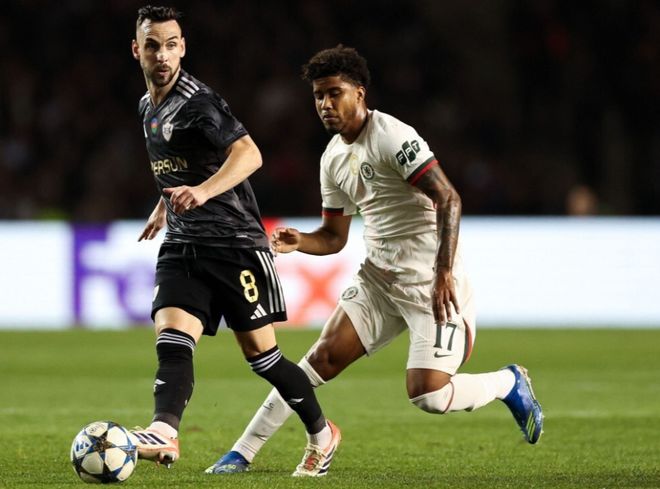 第16分钟,埃斯特旺晃开角度打近角得手,帮助切尔西打破僵局。但第29分钟,哈托失误,杜兰射门中柱后安德拉德补射破门,为主队扳平比分。第39分钟,哈托手球送点,扬科维奇主罚命中,卡拉巴赫将比分反超至2-1。第52分钟,加纳乔传球被挡后球又回到脚下,他随即低射远角帮助切尔西追平。