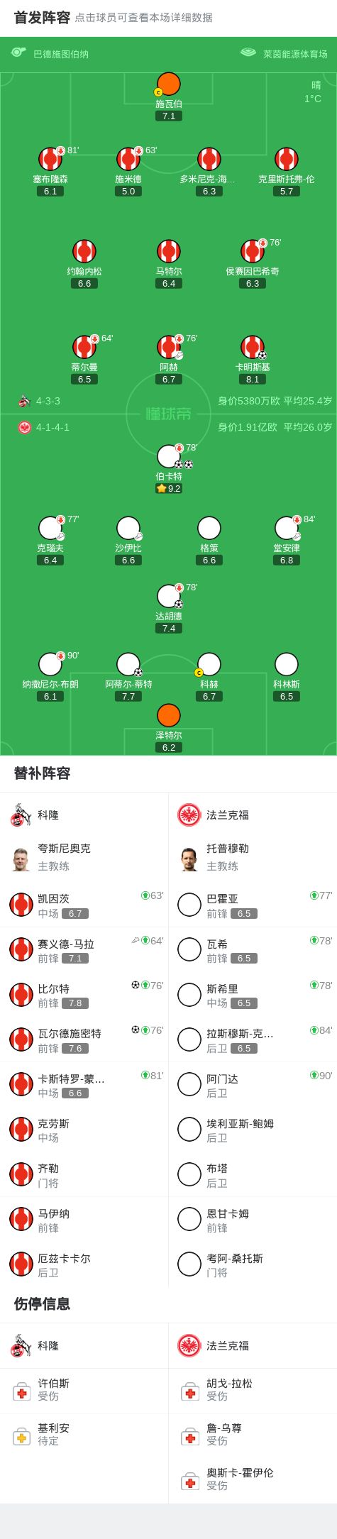 下半场补时第4分钟,科隆球员赛义德-马拉助攻瓦尔德施密特打入一球。