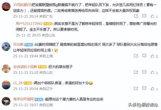 有球迷點評表示:“把發展聯盟按照g聯賽搞不就行瞭,把年輕隊員下發,允許簽幾名網紅球員(要有一定實力),還能提高熱度。二輪秀或者落選秀給雙向合同,這樣不會有大量棄權現象”。