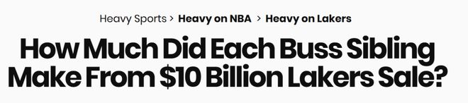 在最新一期播客節目中,ESPN名記文霍斯特透露,長期擔任湖人隊總裁的珍妮-巴斯及她的5個兄弟姐妹在出售球隊多數股權後,每人都獲得瞭豐厚的報酬。“不管100億美元的總估值如何,我聽說巴斯傢的每個子女在各項因素核算完畢後,拿到的支票金額都在近10億美元,這是我瞭解到的情況。”