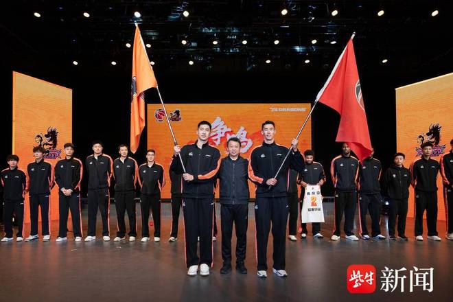 現場授旗環節中,江蘇省體育局籃球運動管理中心主任胡衛權將象征隊伍使命與榮譽的旗幟鄭重授予隊長吳羽佳和蔣浩然。在主持人的帶領下,全體隊員和現場觀眾一起大聲喊出“江蘇江蘇、戰⽃戰⽃!”洪亮的口號聲響徹全場,展現瞭全隊上下齊心、劍指新賽季的決心。