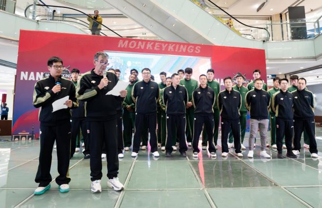 2025年11月29日下午,以“新銳·更意進取”為主題的南京同曦大聖俱樂部洋河天之藍隊2025-26賽季CBA聯賽出征儀式在同曦萬尚城一樓圓滿舉行。同曦集團董事長陳廣川、副總裁馬華艷、楊紅珍,南京同曦籃球俱樂部執行董事陳曦、俱樂部總經理王震、洋河股份江寧分公司經理龔躍、李寧籃球運動資源部經理陳禕蕾、Supercover公司CEO陳良池、同曦男籃全體教練員、球員以及數百名球迷共同見證瞭這一重要時刻。儀式上,球隊以“青春風暴”為旗、“新銳進取”為志,正式吹響新賽季的出征號角。
