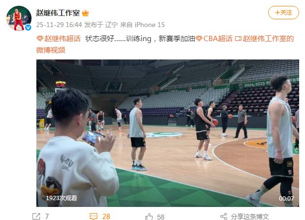 趙繼偉工作室官方曬出趙繼偉的訓練視頻,根據媒體人白曉籃報道,遼寧男籃並未給趙繼偉報名12月2日的首次體測補測。如此一來,趙繼偉將無緣CBA俱樂部杯的小組賽,也將無緣CBA新賽季至少前5輪比賽。
