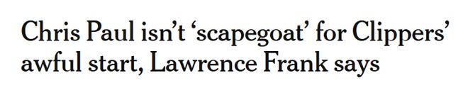 北京時間12月4日,在決定與未來名人堂控衛克裡斯-保羅分道揚鑣後,洛杉磯快船隊籃球運營總裁弗蘭克為球隊本賽季的糟糕表現承擔瞭“全部責任”,同時向媒體和球迷保證,球隊並未將保羅當作替罪羊。