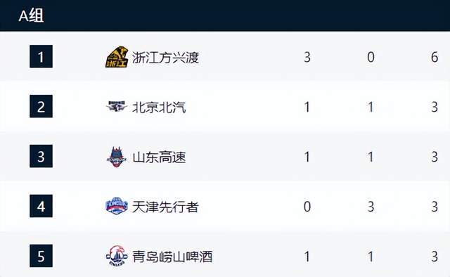 A組則是打2場比賽,下午15點,青島對陣天津,晚上19:30,北京對陣山東,繼續為小組前2名努力。
