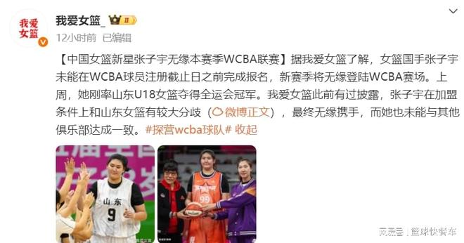 這不,在這一次全運會結束以後,韓旭已經做出一個驚人的決定,下賽季她將不留在WCBA聯賽效力,她將前往澳洲聯賽效力,試圖再次沖擊WNBA。而韓旭的離開,也導致WCBA聯賽內線匱乏。原本張子宇的橫空出世,可以很好的彌補這一短板。可現如今,張子宇這邊也出現問題瞭。根據知情人士透露,2米28的張子宇由於在球員註冊截止日尚未完成註冊,已經確定無緣WCBA新賽季。