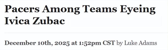 北京時間12月11日,據NBA記者西格爾報道,步行者隊是本賽季有望追逐祖巴茨的球隊之一。消息源透露,步行者近期已致電快船,詢價這位中鋒。