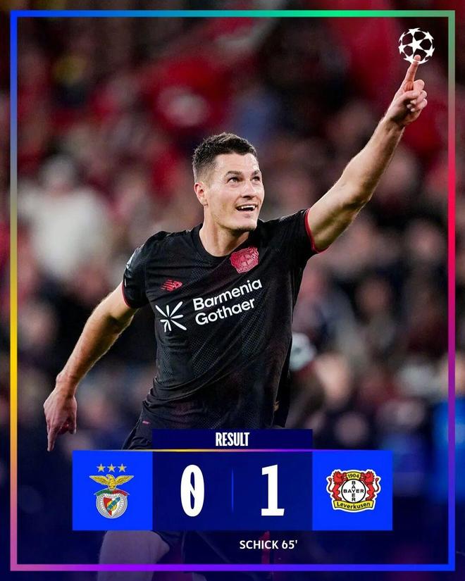 本菲卡坐镇光明球场却陷入黑暗时刻,卢克巴基奥和奥塔门迪各有一次中柱,下半场替补登场的希克为客队打进制胜球。本菲卡遭遇欧冠4连败,勒沃库森则迎来欧冠首胜。