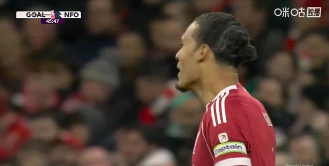 易邊再戰,下半場開場不到1分鐘,諾丁漢森林前場左側進攻,麥卡利斯特莽撞上搶被對手輕松過掉,內科-威廉斯傳中,薩沃納跟進將球打進利物浦球門,森林客場兩球領先。利物浦隊長范戴克對於隊友的表現非常不滿。