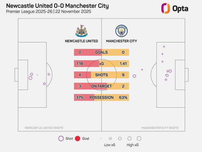 對此來自Opta的統計指出,紐卡和曼城上半場合計浪費瞭7次絕佳機會,其中紐卡4次,曼城3次,這是英超自2010-11賽季以來,所有上半場以0-0結束的比賽中兩隊絕佳機會合計數量最多的一場。
