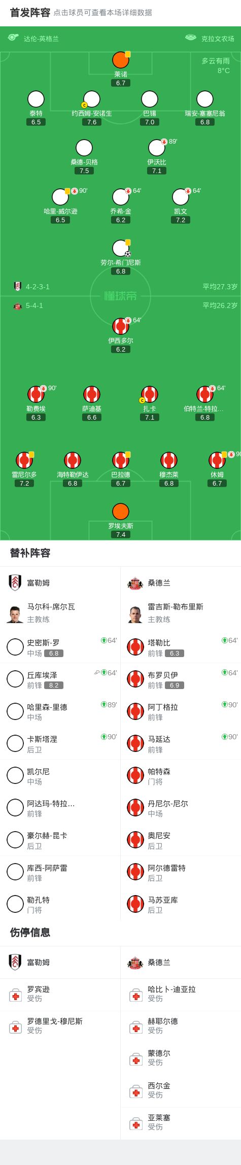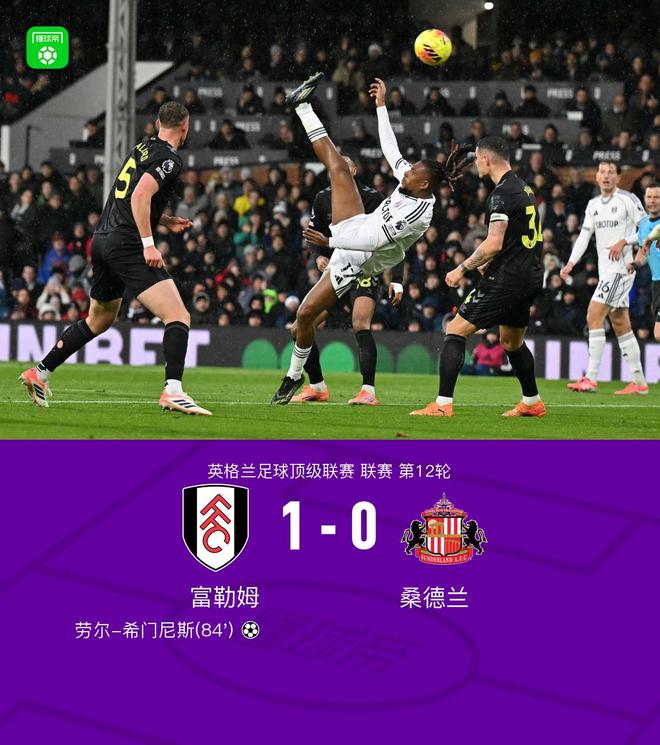 北京時間11月22日23:00,英超第12輪,富勒姆坐鎮主場迎戰桑德蘭。上半場雙方均無建樹;下半場,丘庫埃澤送出關鍵助攻,幫助勞爾-希門尼斯完成破門。憑借此次進球,富勒姆以1-0戰勝對手,全取三分。