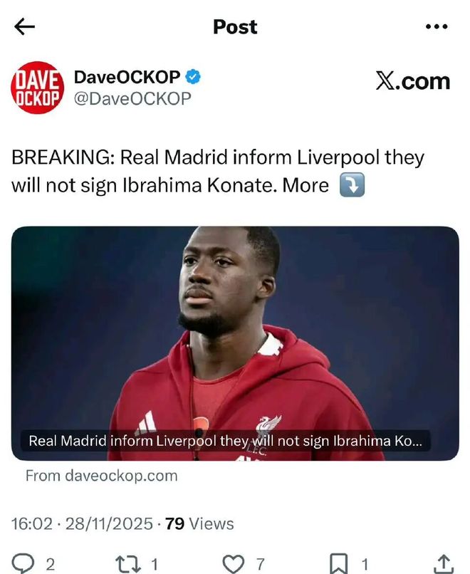 【不作不黄】DO:“虽然皇家马德里已经考虑过科纳特,但我们可以透露,皇马方面已经直接、明确地通知了利物浦,尽管有大量猜测,他们现在对引进这位法国国脚不感兴趣。”六贤旗一角点评靠谱度:⭐⭐⭐⭐⭐ 把下