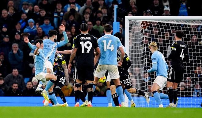 補時第1分鐘,切爾基右路橫傳,在幾乎得不到射門空間的情況下,福登橫向連過2人之後左腳強行起腳,皮球直入死角。